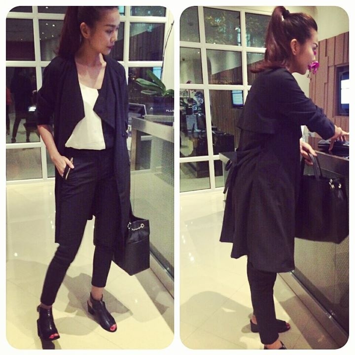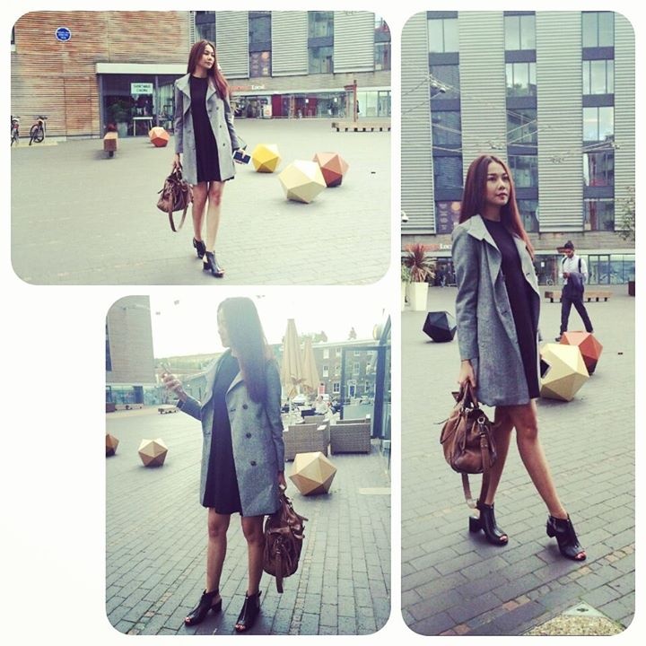 | Một hình ảnh cá tính trên phố với áo trendcoat mix kèm bốt khoét trẻ trung. |
