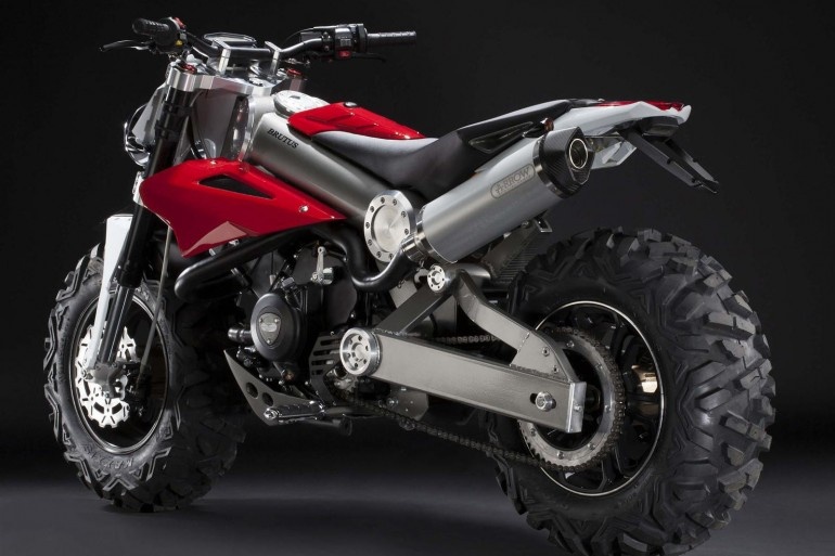 Bản concept Brutus được coi là một mẫu xe SUV trong dòng xe máy. Thân hình khá to lớn của Brutus ngự trên hai bánh xe cỡ lớn tương tự như trên những chiếc ATV, giúp chiếc xe có thể vượt qua những đoạn đường lầy lội, địa hình hiểm dễ dàng. Đây là một mẫu xe phù hợp cho những người đam mê khám phá vùng đất hẻo lánh, xa xôi.