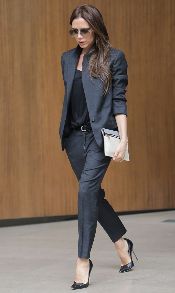 Phong cách lạnh lùng của Vic đặc biệt thích hợp với những bộ vest cá tính và mạnh mẽ. Bà Becks kết hợp những bộ vest kèm sơ mi và giày mũi nhọn tạo vẻ sang trọng, thanh lịch và đẳng cấp.
