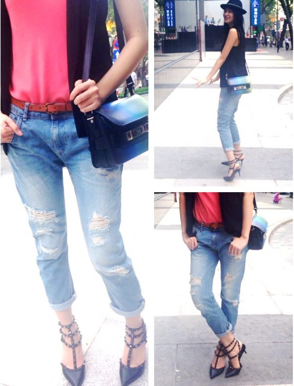 5. Kết hợp cùng vest: Nếu như quần boyfriend dễ làm mất dáng cơ thể thì vest lại dễ tạo vóc dáng cân đối, cao ráo hơn, bạn có thể học tập Hà Tăng ở cách mix này.