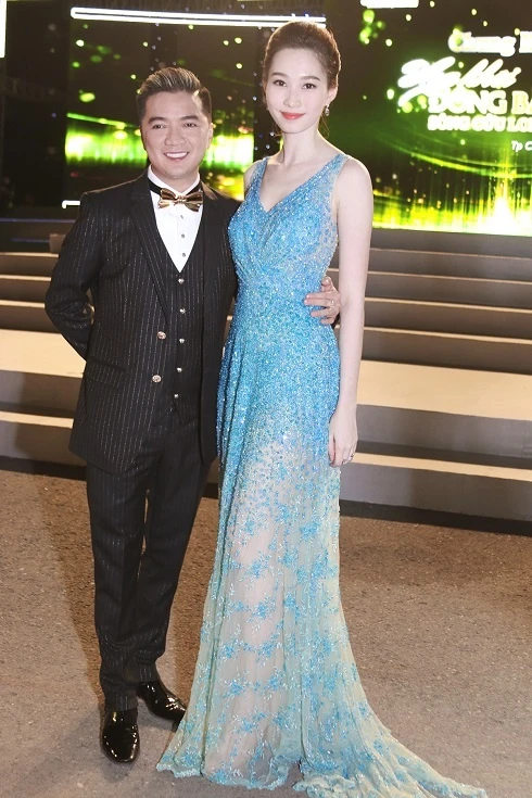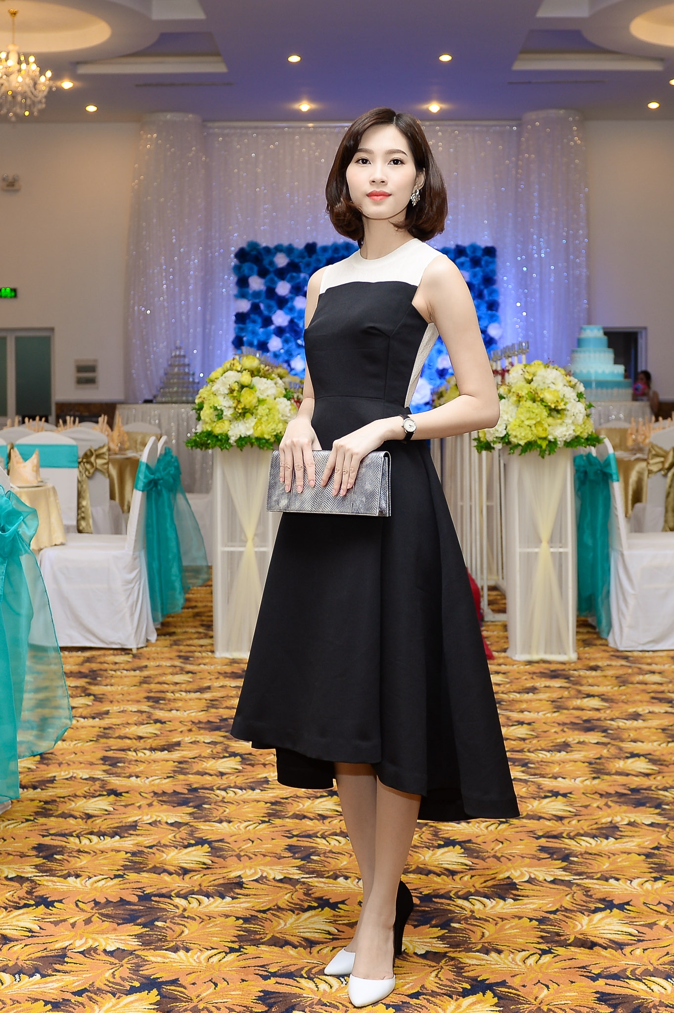 | Cuối tháng 6, hoa hậu đảm nhận vai trò giám khảo cuộc thi Hoa khôi Đồng bằng sông Cửu Long 2015. Trang phục tông xanh, kết hạt tinh tế giúp hoa hậu nổi bật ở chương trình. Thiết kế phù hợp với không gian tiệc mùa hè. Ảnh: An Trần |