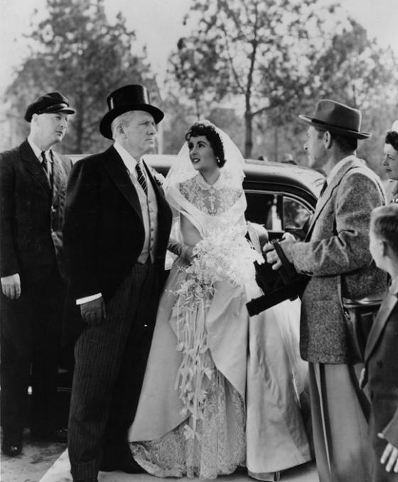 Elizabeth Taylor khoe nhan sắc lộng lẫy với chiếc váy được xếp nếp phần cổ tinh tế kết hợp cùng vải ren, voan trong bộ phim Father of the Bride năm 1950.