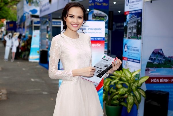 Diễm Hương đẹp như một thiên thần khi diện chiếc đầm maxi ren trắng. Nụ cười bừng sáng và chiều cao 1,71m của cô giúp trang phục này thêm phần hoàn hảo. |