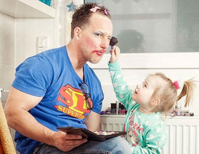| Vui vẻ làm người mẫu để con trang điểm. |