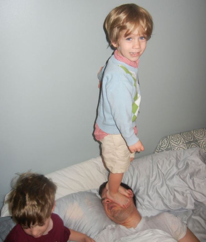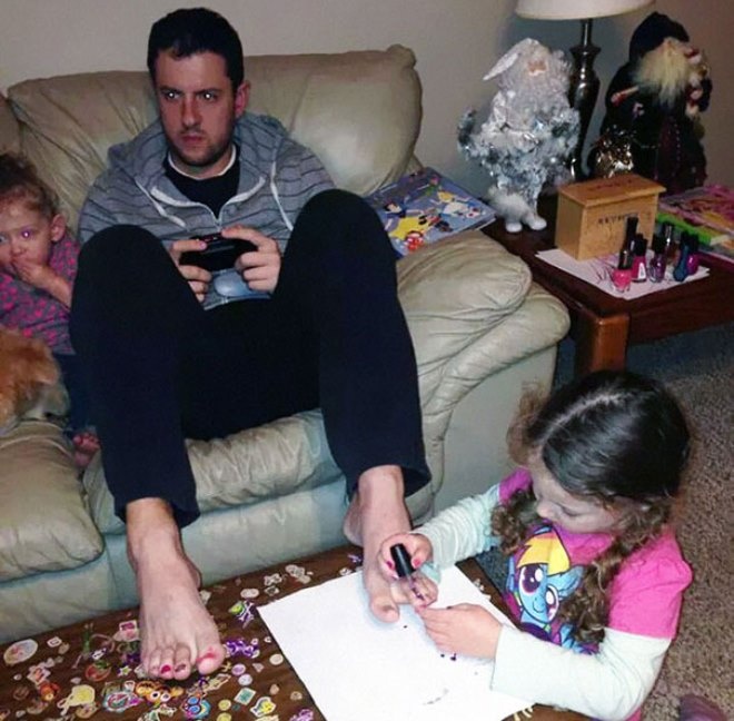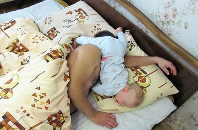 | Dù bị con nghịch ngợm, bố vẫn an giấc. |