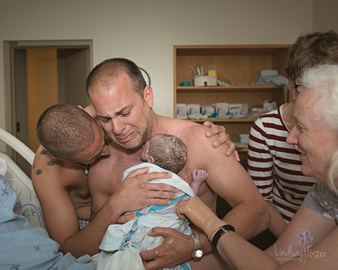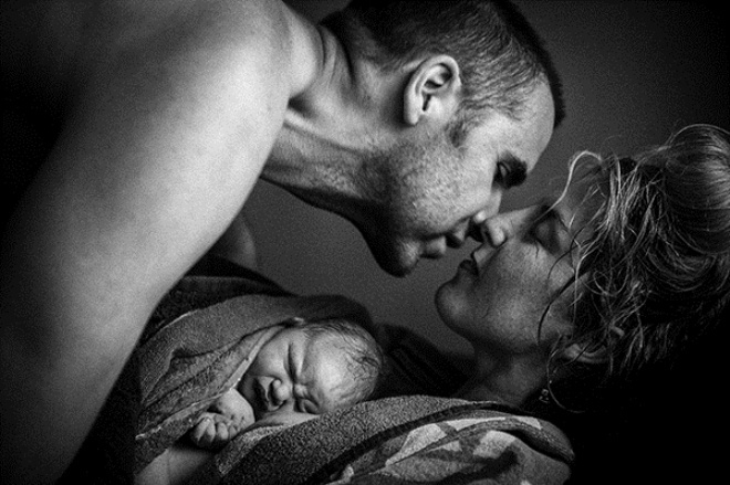 | Cha mẹ vui mừng chào đón thành viên mới. Tác phẩm của nhiếp ảnh gia Belle Verdiglione. |