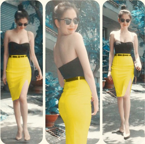 | Váy bút chì xẻ cao rất được các bạn trẻ ưa thích. |