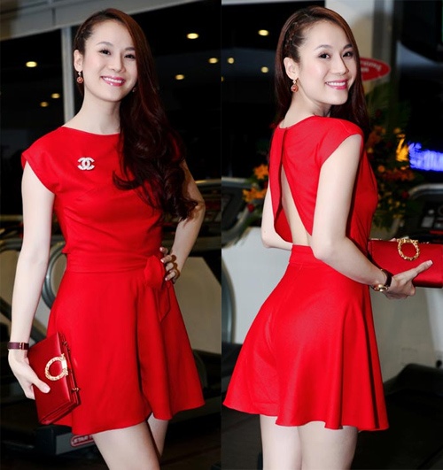 | Thái Hà chọn kiểu áo xẻ lưng vừa phải giúp cô khoe khoảng da thịt trắng mịn. |
