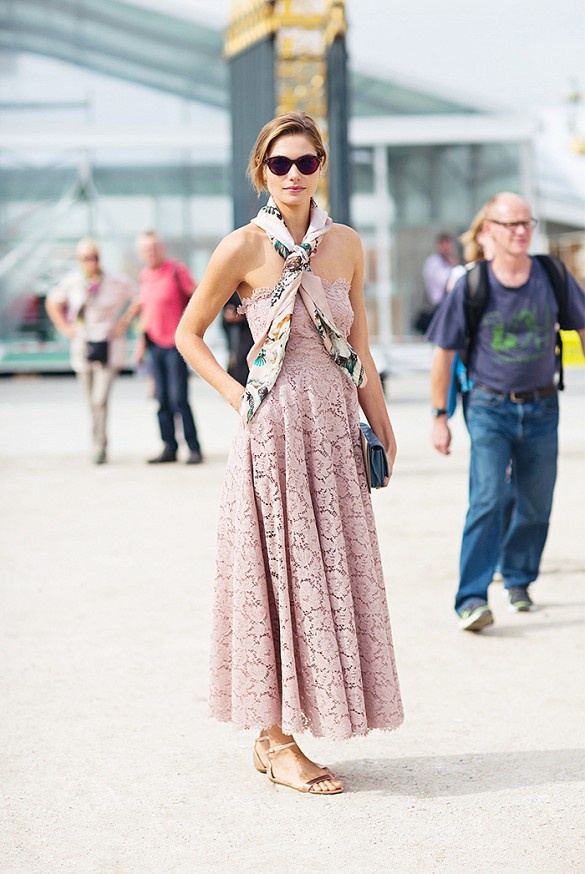 Đây là mẫu váy không còn quá mới mẻ, và để giảm đi độ hở của nó, các cô gái có thể sử dụng thêm phụ kiện là khăn hoặc vòng cổ statement.