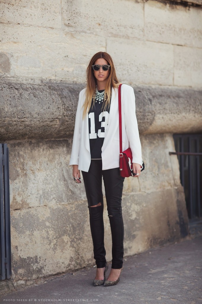 | Chiếc áo thun số của ngày hè có cơ hội để tận dụng lại với blazer trắng trong ngày thu. |