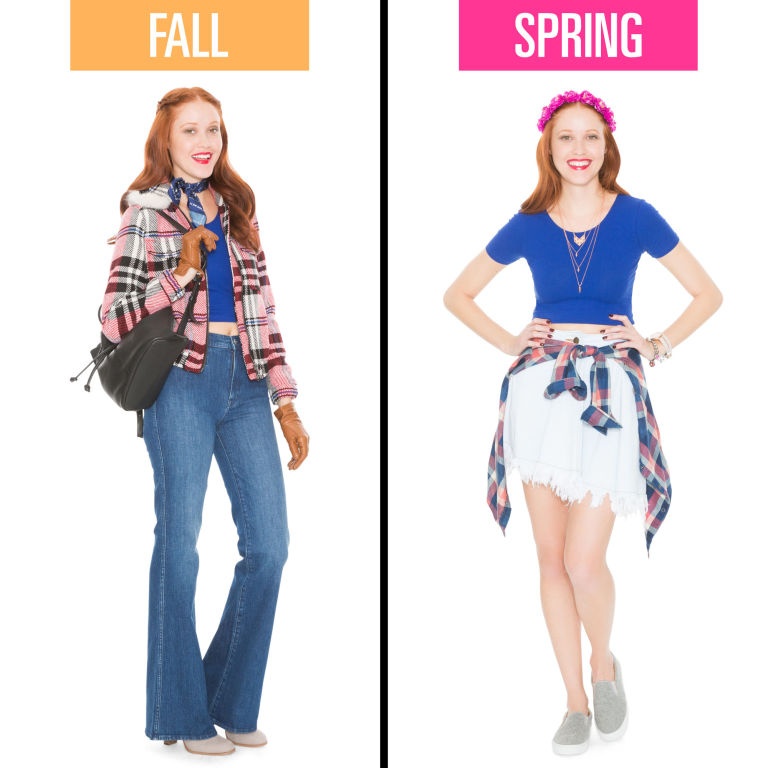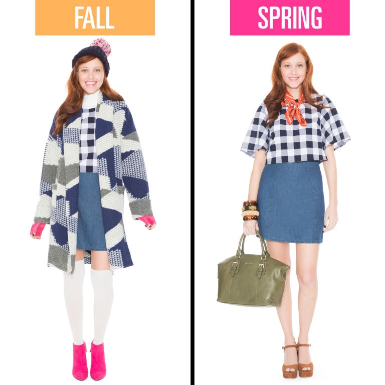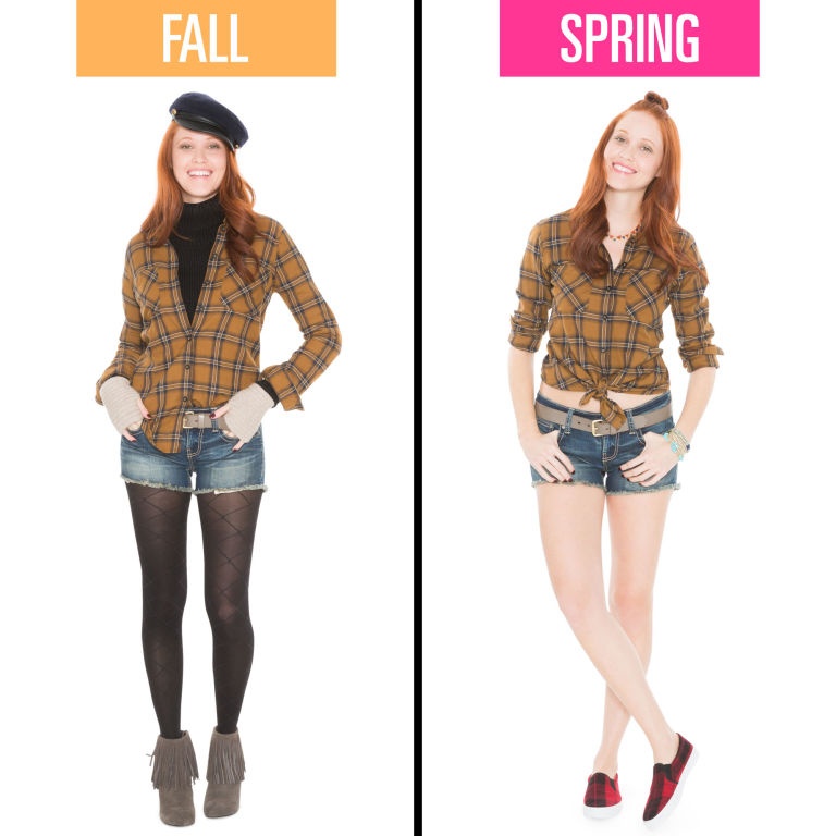 | Set đồ mùa thu với áo khoác và tất dày được cởi bỏ để tạo vẻ trẻ trung, năng động cho thời trang xuân. |