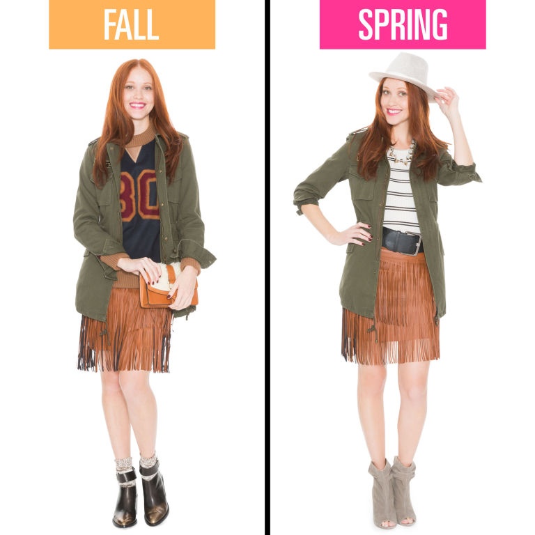| Bạn có thể diện lại váy tua rua, áo khoác amy, chỉ cần thay một chi tiết nhỏ với áo nỉ bằng áo thun là đã đủ hợp thời trang và thời tiết. |