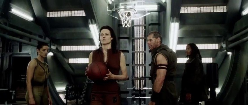 | Cú ném bóng rổ trong Alien Resurrection (1997): Ở phần bốn của loạt Alien, nhiều tình tiết khiến khán giả bối rối, trong đó có phiên bản biến đổi gene của nhân vật chính Ellen Ripley (Sigourney Weaver). Mang một phần ADN của quái vật Xenomorph, máu acid và phản xạ cực nhanh, Ripley nhanh chóng gây ấn tượng bằng màn ném bóng trúng rổ mà không cần nhìn mục tiêu. Trên thực tế, minh tinh Sigourney Weaver chỉ diễn năm lần là hoàn thành phân đoạn mà không cần nhờ đến kỹ xảo điện ảnh. |