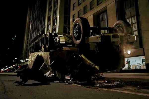 Batmobile hạ chiếc xe tải 18 bánh của Joker trong The Dark Knight (2008): Để tạo ra cao trào cho cuộc rượt đuổi giữa Người Dơi và Joker, Christopher Nolan đưa toàn bộ đoàn làm phim ra ngoài đường phố Chicago, đồng thời sử dụng một chiếc xe tải thật. Ông xin phép đóng cửa một số con đường xung quanh, đồng thời tạo ra một thiết bị pít-tông giúp cỗ xe 18 bánh bị lật tung ở thời điểm thích hợp. Công việc duy nhất của đội ngũ kỹ xảo là xóa bỏ đạo cụ đặc biệt gắn trên xe trong quá trình hậu kỳ. |