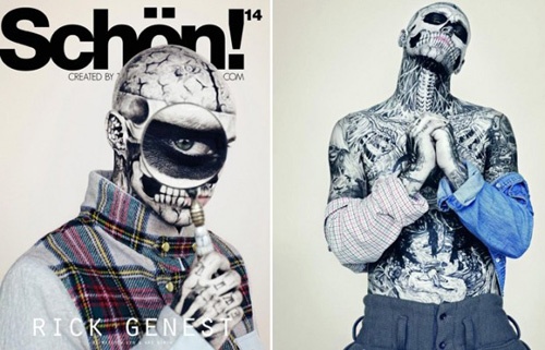 Rick Genest hay còn gọi là chàng trai Zombie rất đặc biệt khi anh biến mình trở thành một nghệ thuật sống bằng cách xăm cơ thể thành hình Zombie từ năm 19 tuổi. Tài năng được phát hiện bởi Nicola Formichetti, là giám đốc thời trang cho Lady Gaga, Rick Genest đã từng xuất hiện trong video Born this way của nữ ca sĩ Lady Gaga. Chàng trai cá tính này cũng từng là người mẫu cho bộ sưu tập thu đông của thương hiệu Thierry Mugler.