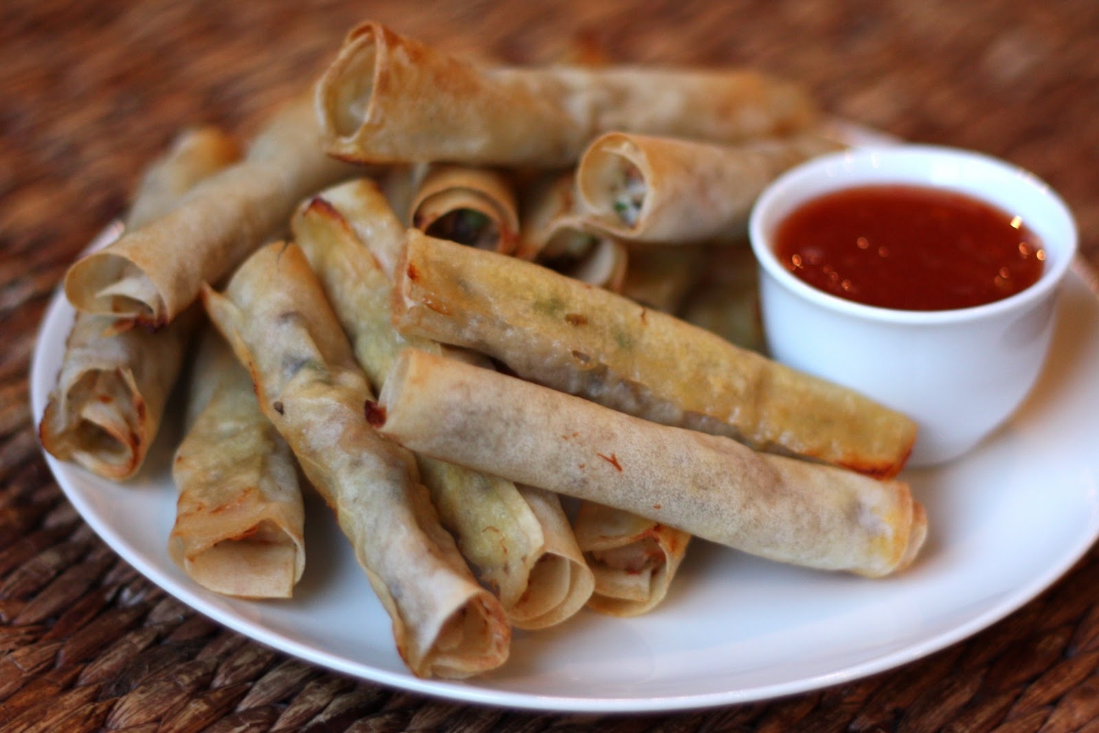 Lumpia: Món nem cuốn này thường xuất hiện ở các thành phố có người Hoa sinh sống ở Phillippines. Phần nhân gồm măng băm nhỏ trộn thịt gà hoặc tôm xay, ướp gia vị, sau đó cuộn trong bánh nem và rán giòn. Lumpia thường được ăn kèm hẹ tây hoặc tỏi tây non cùng một loại sốt làm từ tương ngọt. Đôi khi, món này được chấm với sốt sambal cay ngọt hoặc ăn với ớt tươi. Ảnh: Ubcphilippinestudies. |