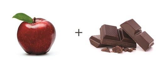Kiểu ăn kết hợp này thỏa mãn nhu cầu về chất ngọt và có tác dụng bảo vệ sức khỏe mạch máu. Táo là loại thực phẩm giàu flavonoid có tên quercetin, trong khi đó sôcôla thẫm màu lại giàu flavonoid có tên catechin.