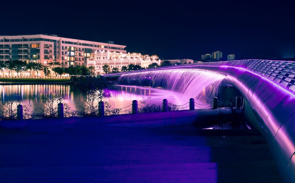 Khu hồ Bán Nguyệt và cầu Ánh Sao (quận 7) được ví như Singapore và Dubai tại TP HCM. Ban ngày khu vực này khá nắng, nhưng đến đêm, đây là điểm hẹn giá rẻ của nhiều bạn trẻ. Các trải nghiệm bạn nên có tại đây là đi dạo, chụp ảnh, đạp ngôi sao (trên cầu), thưởng thức quà vặt. Ảnh: Trần Quang Minh. |