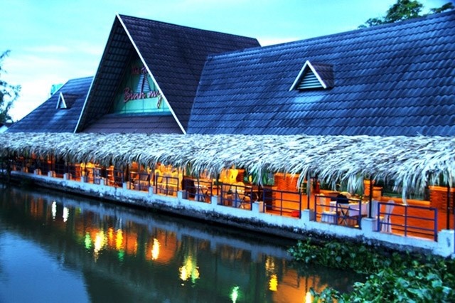 Khu du lịch ven sông Bình Mỹ là khu vui chơi giải trí sinh thái tọa lạc tại xã Bình Mỹ, huyện Củ Chi. Nơi đây được thiết kế theo phong cách miền quê với nhà lá, ao, lu sành... Giá vé ở khu vui chơi 130.000 đồng một người vào ngày thường và 170.000 đồng một người vào cuối tuần. Ảnh: Facebook KDL. |