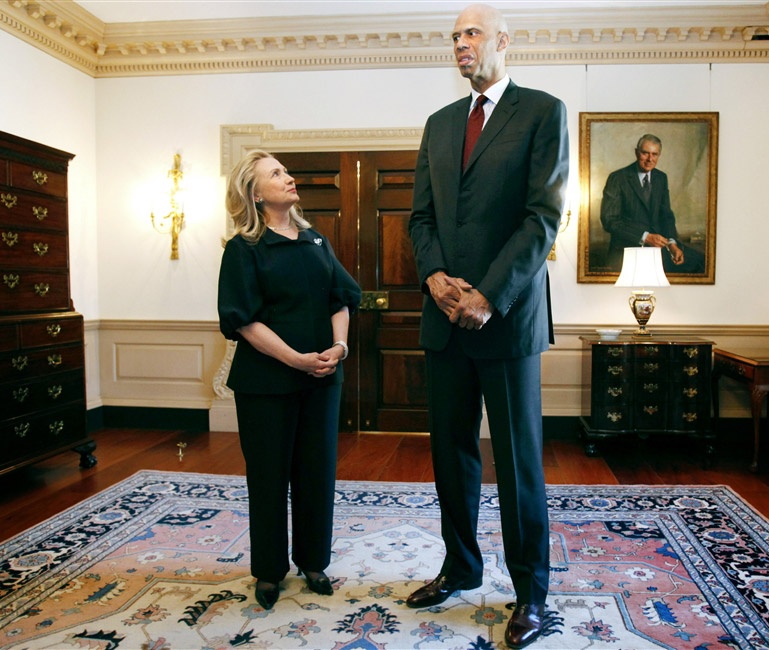 | Abdul-Jabaar bên cạnh Hillary Clinton. |