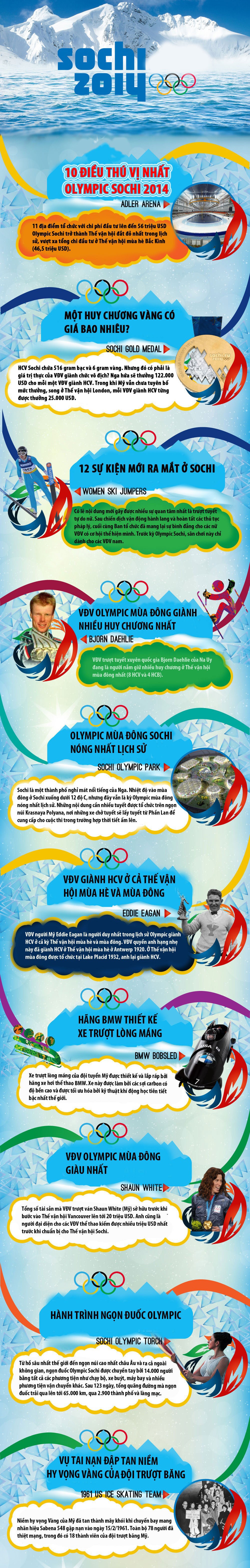 Infographic này sẽ tiết lộ những điều thú vị và bất ngờ nhất về Thế vận hội mùa đông 2014 đang diễn ra ở Sochi, Nga.