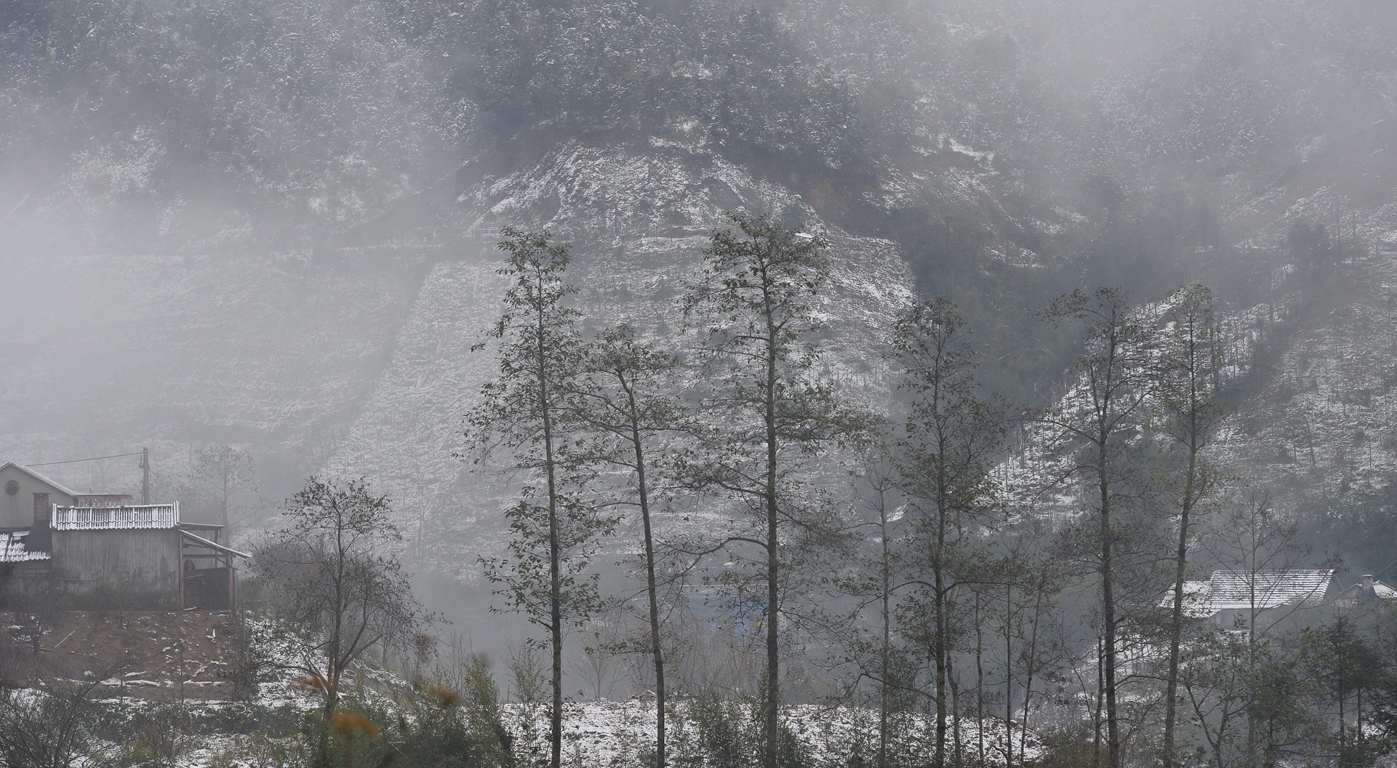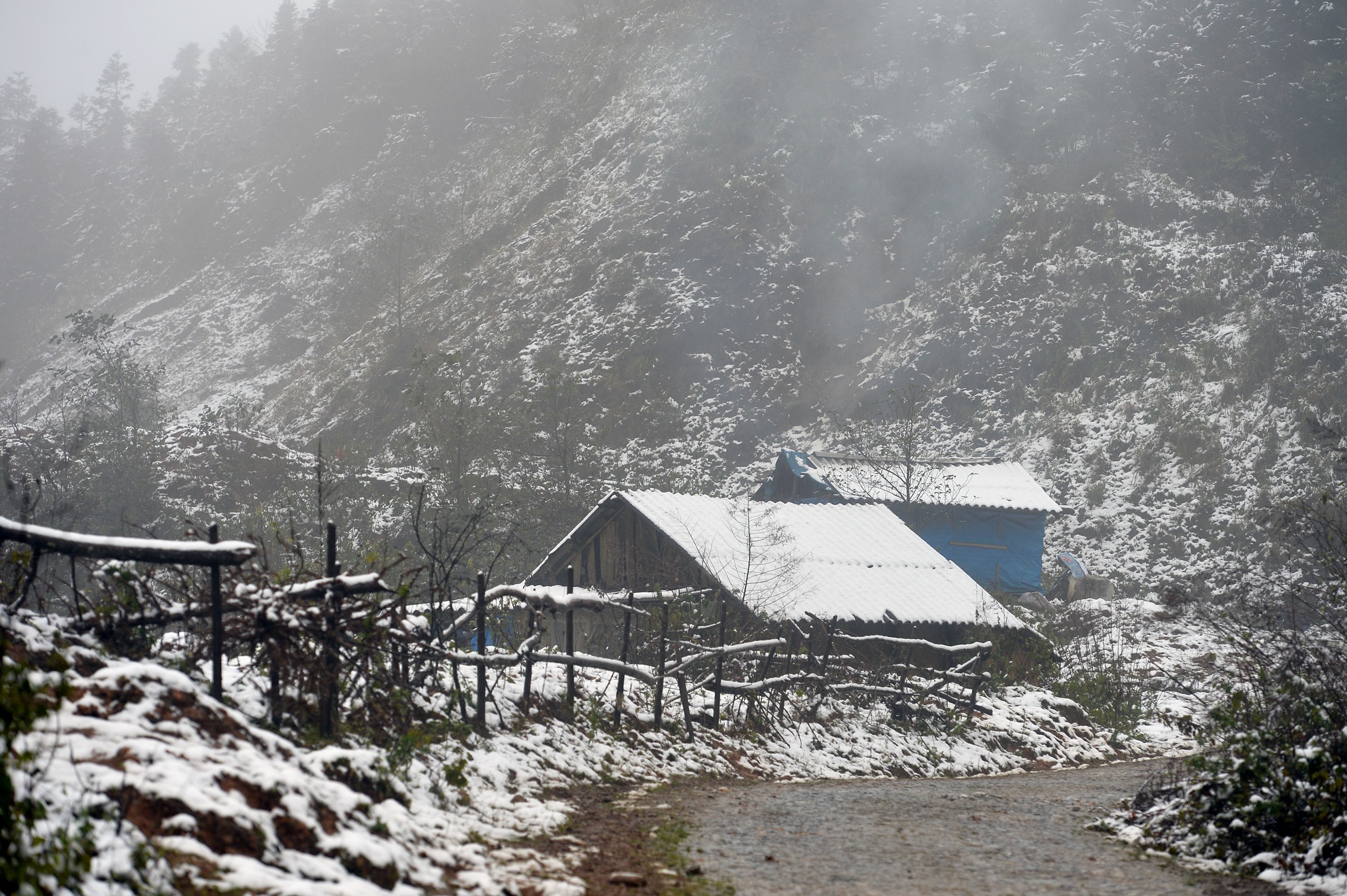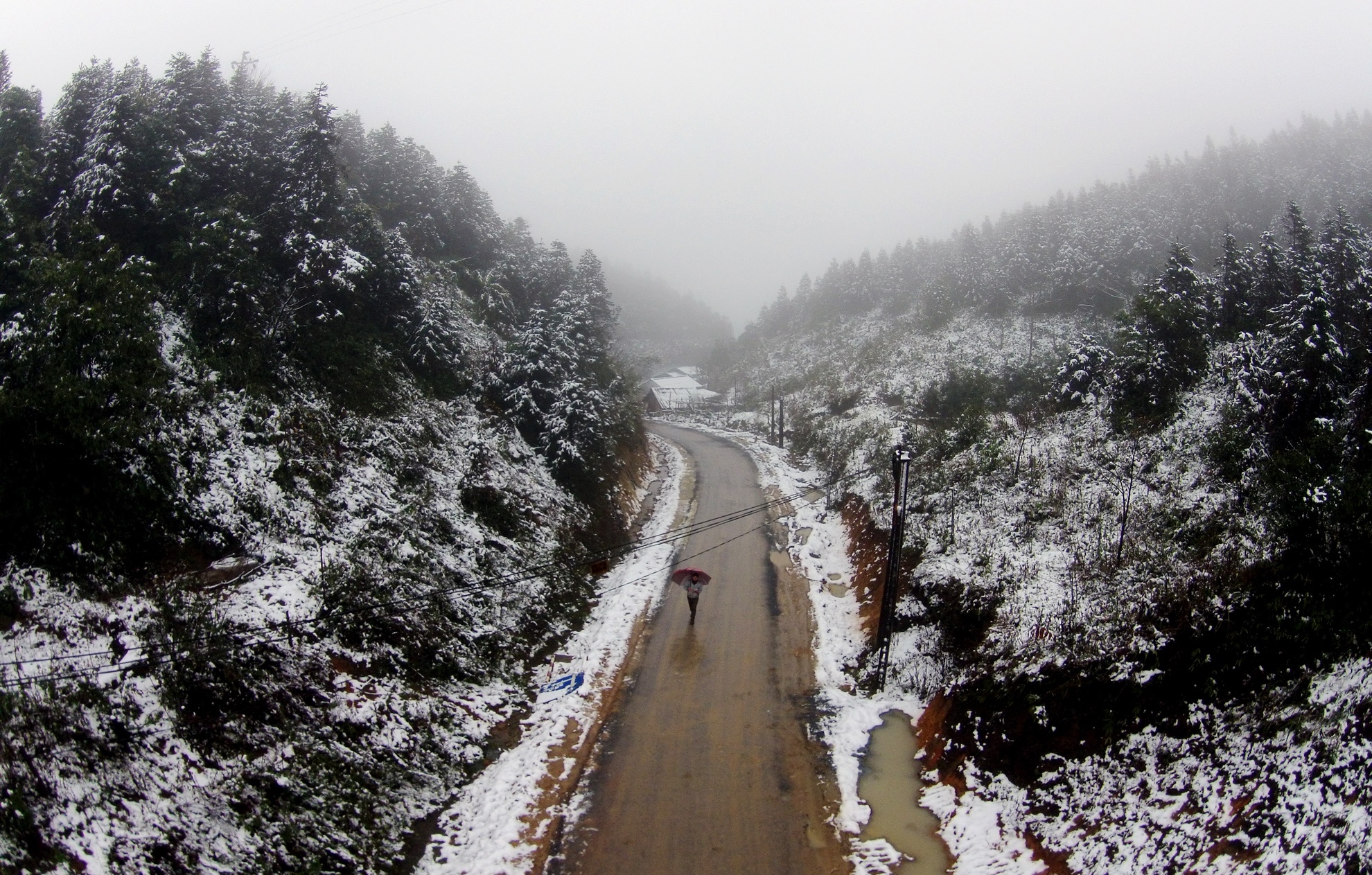 | Các con đường lên núi càng cao tuyết phủ càng dầy, trắng xóa khắp nơi. |