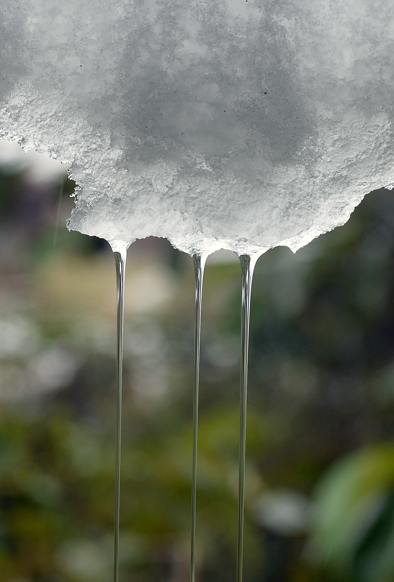 | Băng tuyết đọng và mưa rơi kết hợp làm cho những giọt băng trở nên kỳ thú. |
