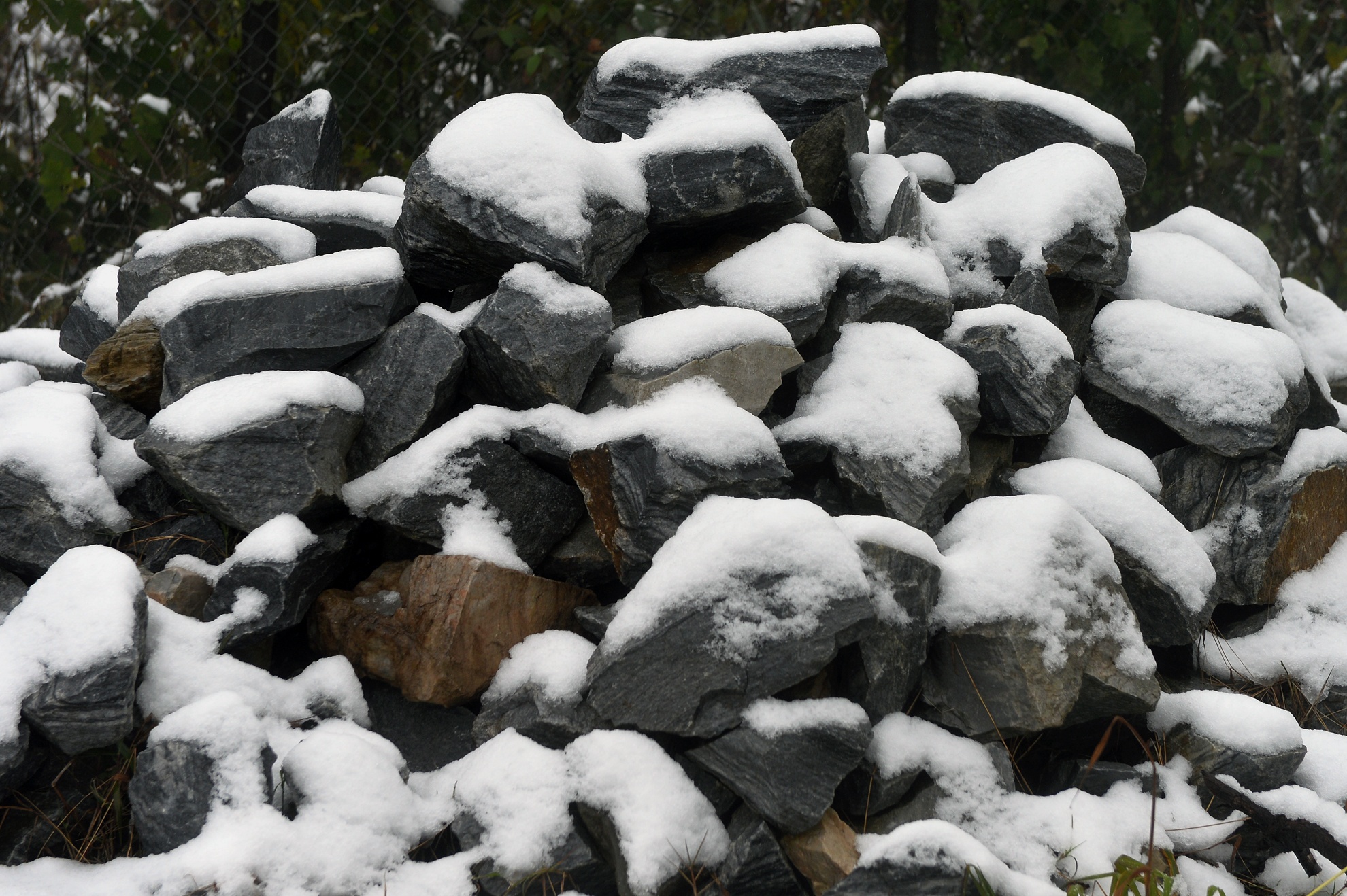 | Những hòn đá bên vệ đường cũng bị đóng tuyết. |