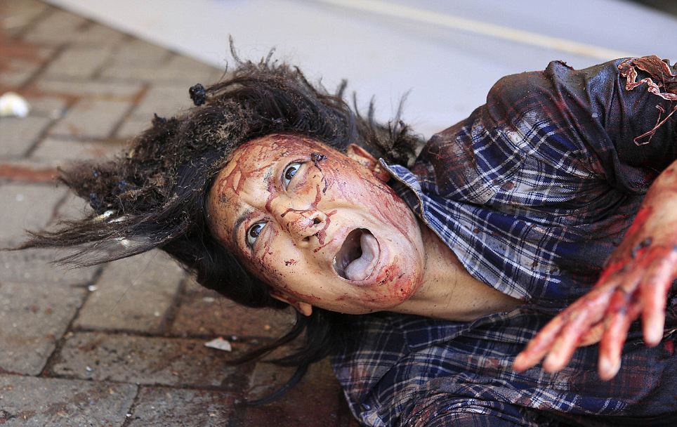 | Một phụ nữ bị thương, mặt đầy máu, đang kêu cứu sau khi bọn khủng bố xả súng vào trung tâm mua sắm Wesgate tại Nairobi, Kenya vàongày 21/9.  Các tay súng đeo mặt nạ xông vào trung tâm thương mại giết chết ít nhất 39 người và làm bị thương 150 người. Vụ tấn công này là một trong những vụ khủng bố lớn nhất thế giới sau sự kiện ngày 11/9/2001 ở Mỹ. Ảnh: Reuters. |