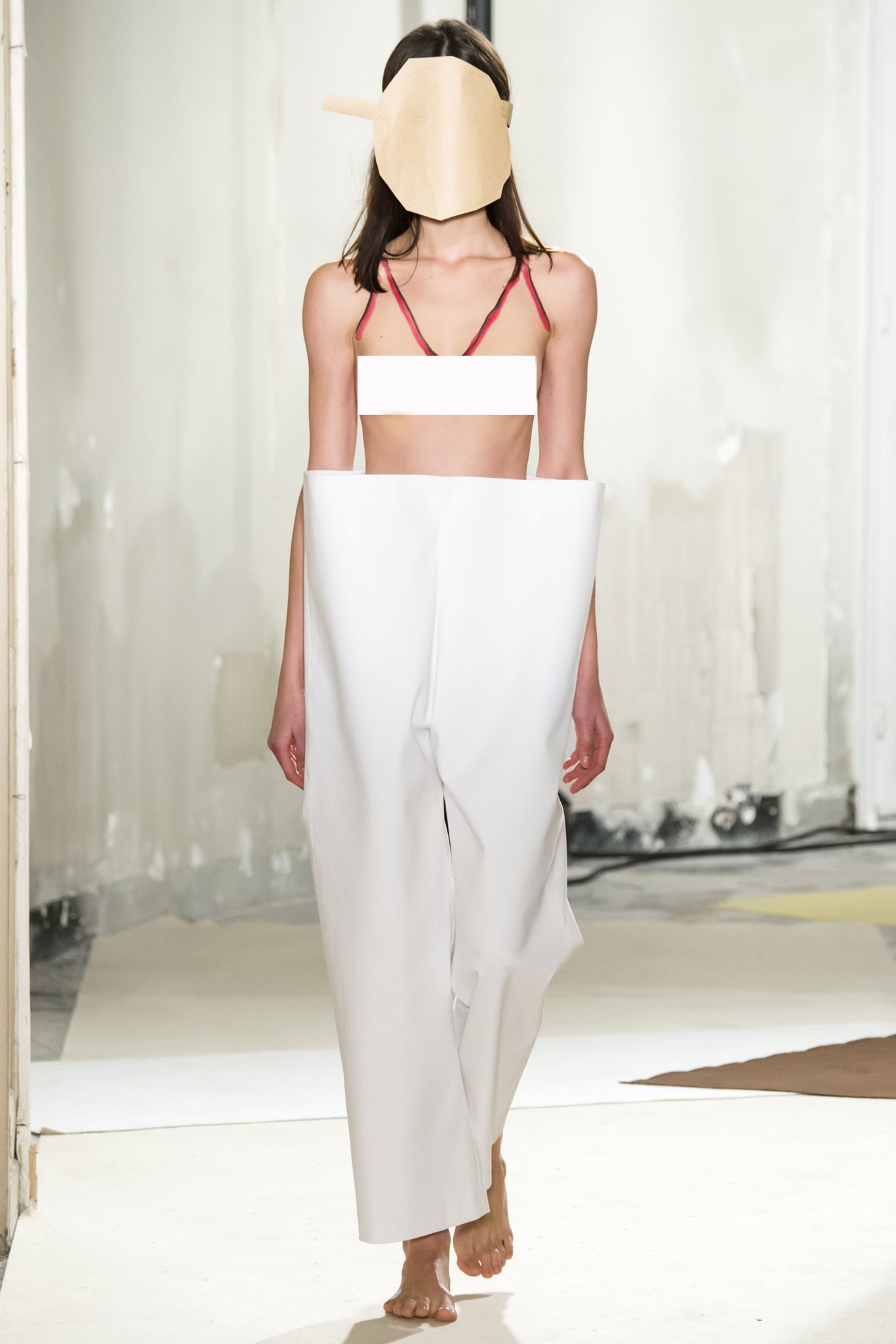 | Mình trần trong show của Jacquemus: Nude không hẳn là điều hiếm của sàn catwalk 2015 nhưng danh hiệu táo bạo nhất có lẽ thuộc về show thu đông của Jacquemus. Trong show, các người mẫu để lộ trọn vẹn phần cơ thể trên. |
