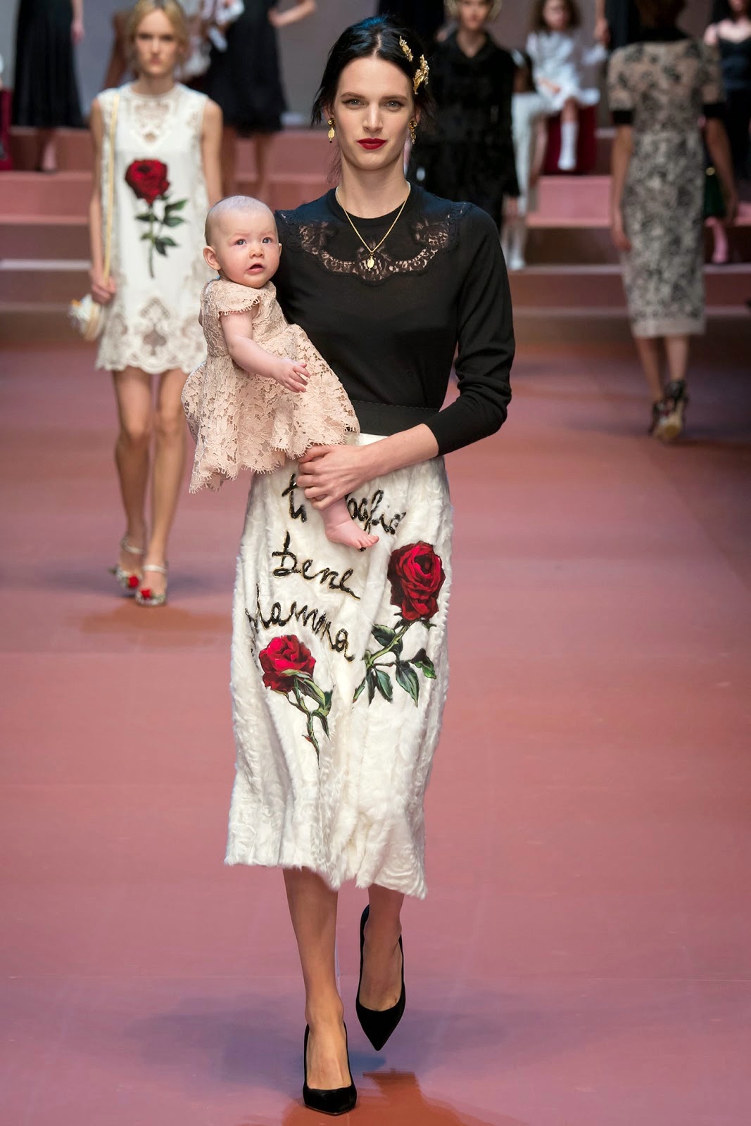 Babymama của Dolce & Gabbana: Với mục đích tổ chức một show tôn vinh tình mẫu tử, Dolce & Gabbana đã làm điều "bất thường" là để những người mẫu đã làm mẹ sải bước trên sàn catwalk với chính con mình. Đây được đánh giá là ý tưởng đáng yêu và xuất sắc nhất năm. Cảm xúc của người xem được khép lại một cách trọn vẹn với màn kết show của người mẫu đang mang bầu Ashleigh Good.