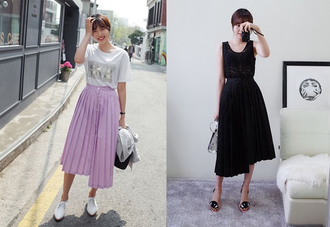 | 7. Váy 2 tầng. Kết hợp giữa 1 tầng vải trơn và 1 tầng vải xếp ly, bạn sẽ có kiểu váy “khó đụng hàng”. |