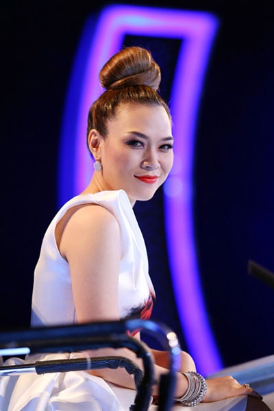 | Trong những sự kiện quan trọng, người ta còn thấy Mỹ Tâm xuất hiện kiêu kì với kiểu tóc búi, mái phồng ấn tượng. |