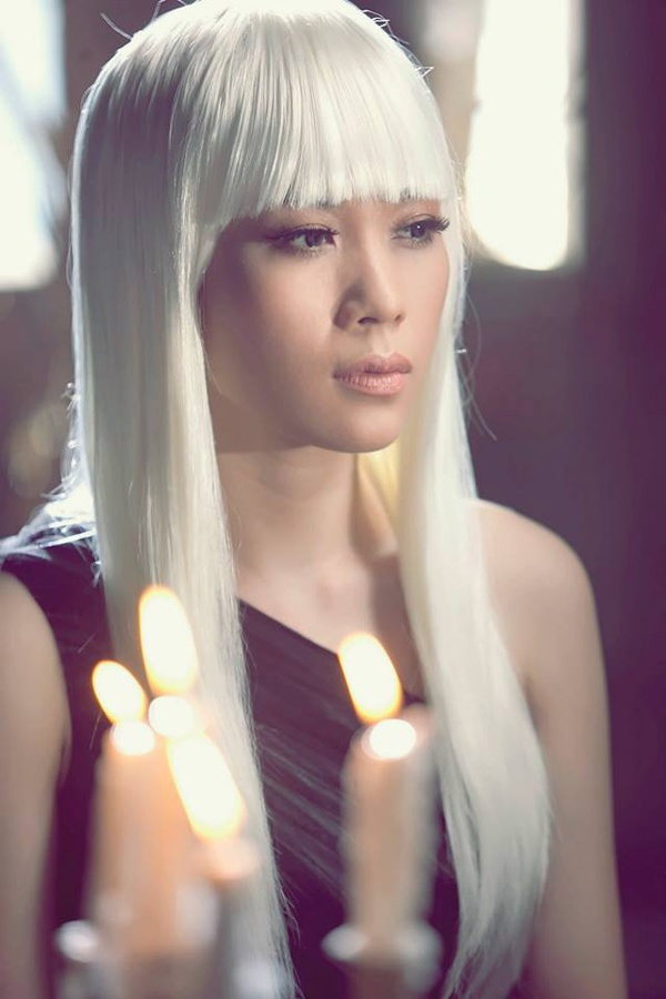 | Tóc nhuộm bạch kim mang lại nét cá tính. |