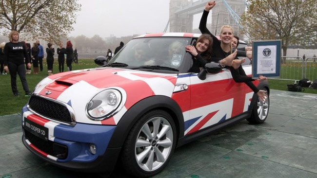 | Kỷ lục về số người chui vào một chiếc Mini Cooper nhiều nhất được xác lập năm 2012 với con số 28 người. |