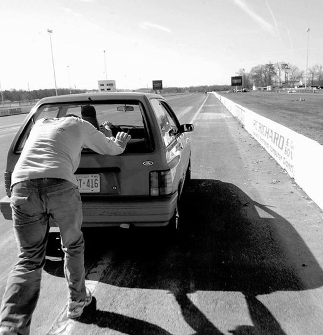 | Kỷ lục đẩy xe đi xa nhất thuộc về anh Ashrita Furman, người có sở thích này. Anh này đã đẩy chiếc Ford Festiva của mình đi hơn 17 dặm tương đương với hơn 27 km trong vòng hơn 6h đồng hồ. |