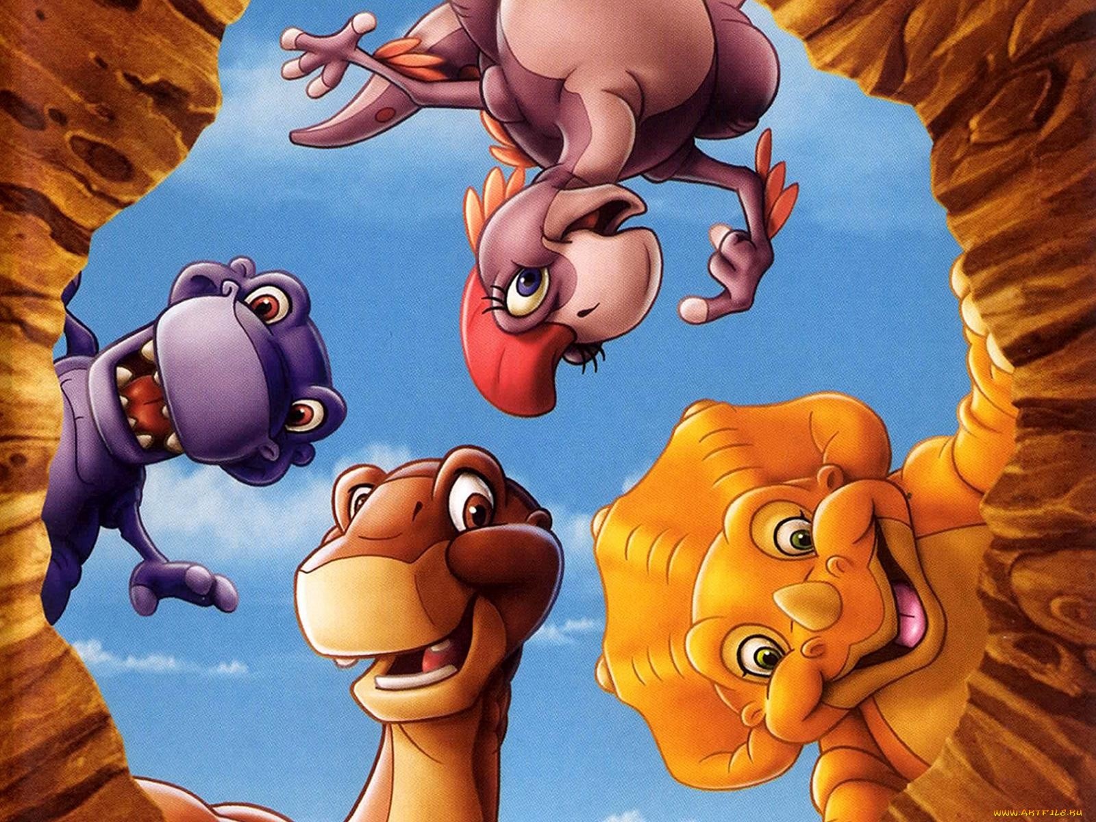 Cốt truyện chính của The Land in Time xoay quanh chú Apatosaurus nhỏ tên Littlefoot. Cậu trở thành khủng long mồ côi sau khi mẹ bị một con Tyrannosaurus giết hại. Trên hành trình chạy trốn, Littlefoot gặp bốn người bạn đồng hành là: Cera (chủng Triceratops), Ducky (chủng Saurolophus), Petrie (chủng Pteranodon) và Spike (chủng một Stegosaurus). |