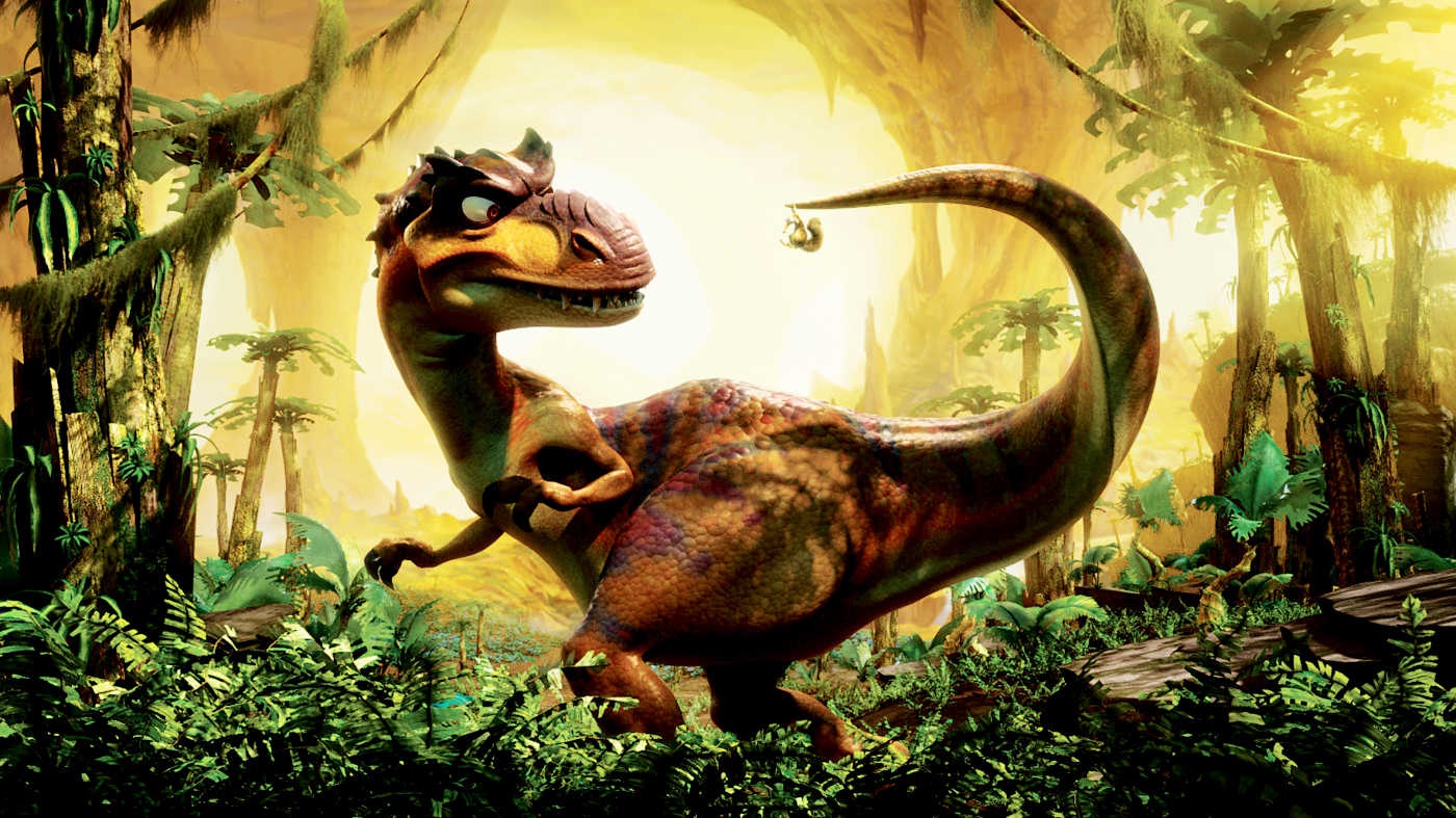 Ice Age: Dawn of the Dinosaurs (2009): Ra đời từ năm 2002, Ice Age nhanh chóng gây tiếng vang và trở thành series hoạt hình được nhiều người yêu thích. Lấy bối cảnh thời tiền sử, loạt phim đem tới nhiều loài sinh vật thuở sơ khai như voi ma-mút, hổ răng kiếm và dĩ nhiên không thể thiếu các khủng long. Thực tế, chúng vốn tuyệt chủng từ đầu Kỷ Băng hà, nhưng các nhà biên kịch vẫn sáng tạo để loài khủng long được góp mặt trong phần ba. |