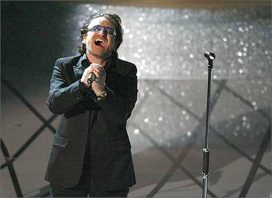 | U2 để lại cho người hâm mộ Oscar 2003 nhiều nuối tiếc với ca khúc Hands That Built America. |