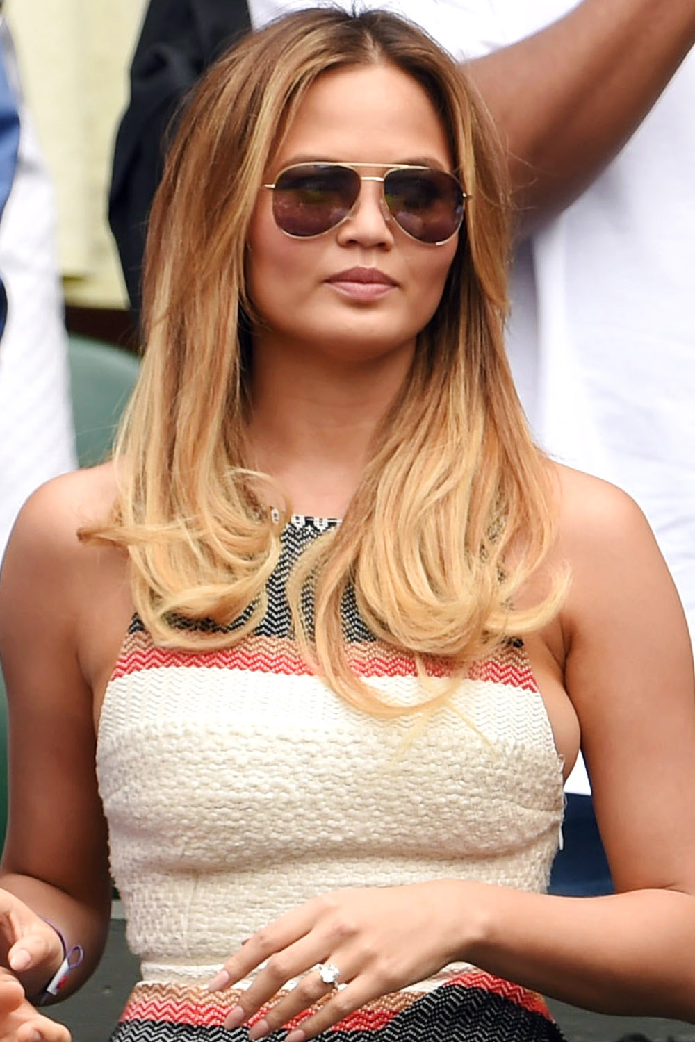 | Chrissy Teigen: Tóc thẳng rẽ ngôi giữa sẽ bớt nhàm chán với phần đuôi tóc uốn nhẹ nhàng. |