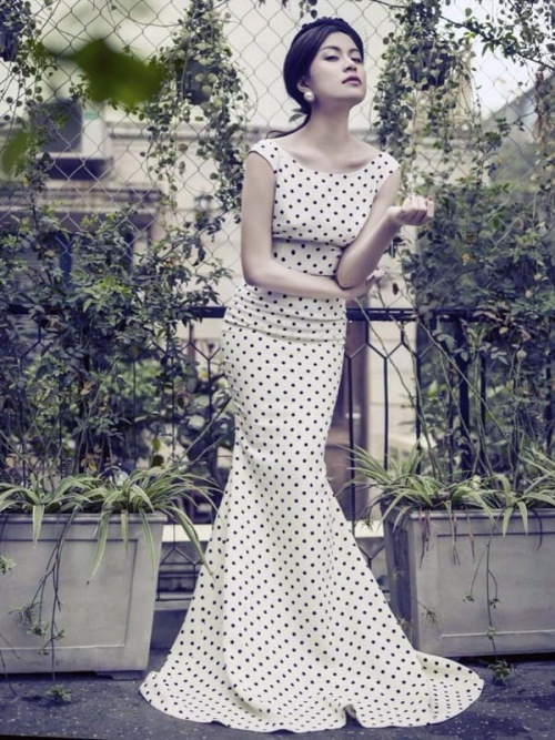Diện trang phục chấm bi, bạn không chỉ ăn gian được vẻ trẻ trung, nữ tính, mà hơn thế, đây cũng được đánh giá là họa tiết ảo giác, giúp giấu những điểm không đẹp mắt và khoe ra lợi thế hình thể.