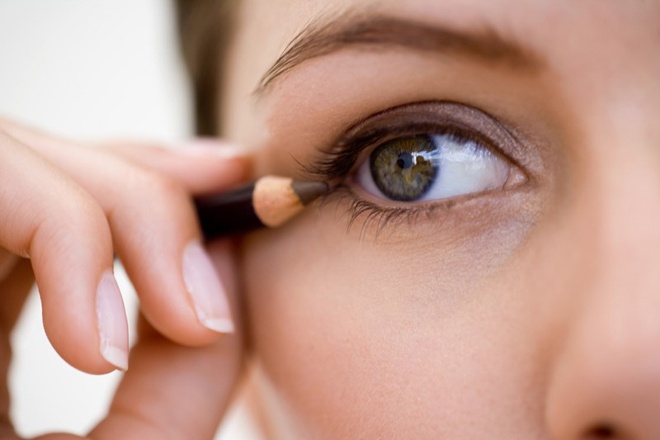 Để đường viền mắt trông tự nhiên hơn, bạn nên kẻ bút chì dọc theo phần gốc lông mi và dùng cọ nhỏ tán đều phần phấn kẻ.