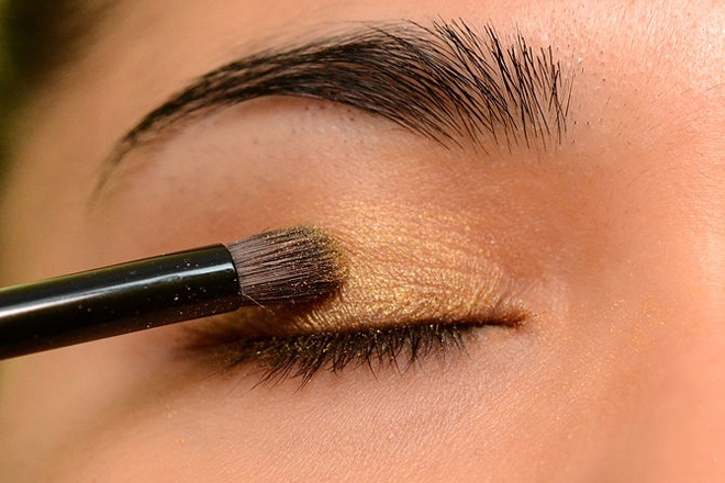 Tuy nhiên, cần lưu ý là phấn quá lấp lánh đôi khi gây tác dụng ngược. Do đó, trước khi trang điểm nên kiểm tra độ sáng của phấn bằng cách quét thử một ít lên mu bàn tay và đưa vào ánh sáng mặt trời. Nếu trên 30 tuổi, bạn cần phủ thêm chút kem nền lỏng hoặc dạng bột ở phần mí mắt để phấn mắt lâu phai hơn.
