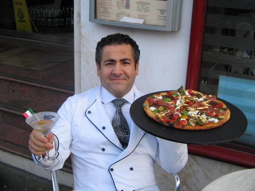 | Pizza Royale 007 - giá 4.200 USD (Italy): Đầu bếp người Scotland, Domenico Crolla, đã tới Italy và làm chiếc bánh pizza có đường kính 30 cm. Nhân bánh gồm tôm hùm, sốt cà chua, cá hồi Scotland hun khói, trứng cá muối tẩm champagne, thịt sấy, dấm làm theo kiểu cổ điển, ngoài ra còn có các mảnh vàng 24 karat rắc trên. Chiếc bánh được bán đấu giá trên eBay để quyên tiền cho quỹ The Fred Hollows và giá cuối cùng là 4.200 USD. |
