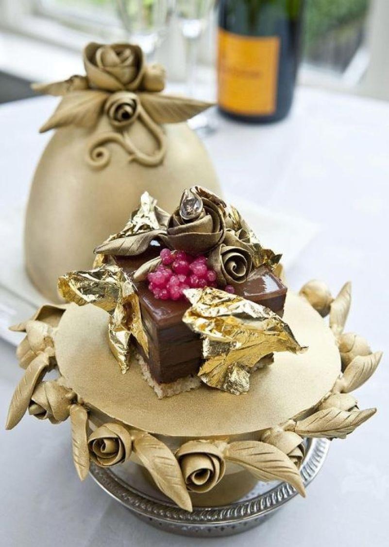 Bánh pudding - 34.531 USD (Lake District, Anh): Khách sạn Lindeth Howe Country House đã đưa ra một loại bánh pudding chocolate do đầu bếp Marc Guibert chế biến. Bánh được tạo hình như một quả trứng Faberge và bọc trong lá vàng. Nguyên liệu làm bánh gồm champagne, trứng cá muối, một viên kim cương 2 carat, rắc vàng ăn được. Món ăn này đẹp đến mức ai không nỡ ăn.