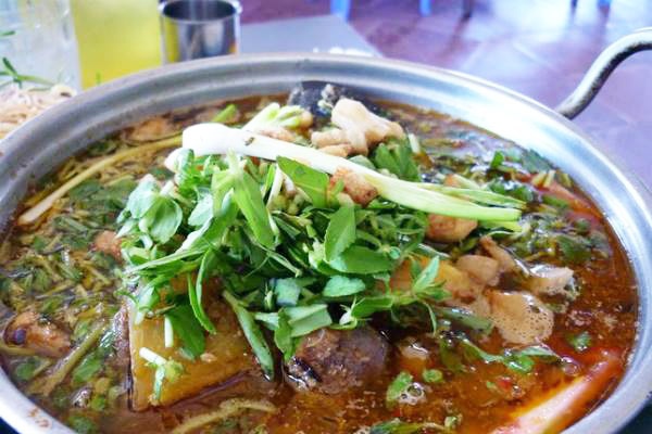 Ra Phan Thiết mà không thưởng thức món lẩu cá bớp cùng gia đình và bè bạn thì thật là thiếu sót! Để thưởng thức món ngon này, bạn có thể ghé quán lẩu cá Ngọc Lan, hay lẩu cá May Huệ trên đường Phan Đình Phùng (gần chợ Phan Thiết). Ngoài những khoanh cá béo thơm, bao tử cá được chế biến khéo léo chấm cùng đĩa nước mắm “thùng lều” càng khiến cho cuộc vui về đêm tại thành phố biển thêm phần thi vị.