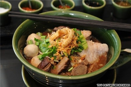 Món ăn truyền thống này thường được bán trên các ghe thuyền tại rất nhiều kênh rạch của Thái Lan. Ngày nay, guay teow rhua đã trở thành món ăn đường phố phổ biến tại Bangkok. Món này gồm rau muống, tiết lợn, giá mầm, thịt bò hoặc lợn dùng kèm với mì. Guay teow rhua thường bán trong bát nhỏ và rẻ, vì thế bạn có thể thử chúng với nhiều loại thịt khác nhau. Bạn có thể thử món tại ngõ Boat noodle, Victory Monument, Bangkok.