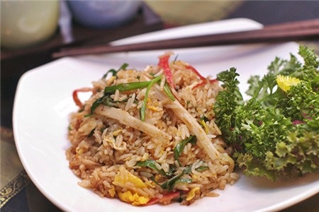 Khao pad, món cơm rang với gạo được nấu từ gạo hoa nhài và mắm cá kiểu Thái. Poo có nghĩa là cua tươi nhưng cua được rang cùng với cơm, trứng. Món cơm có một lát chanh tươi để dùng kèm.