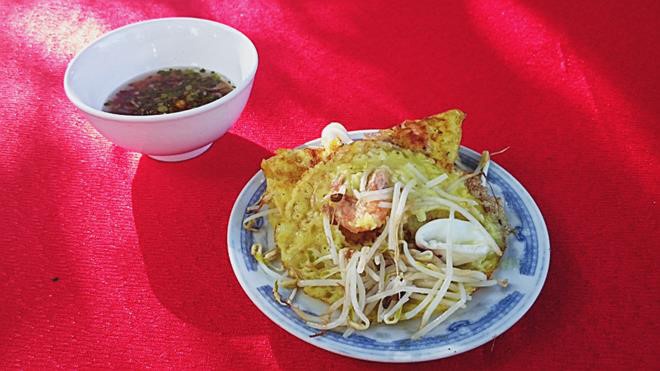 Bột chiên chỉ đơn giản với bột và trứng, song khi thưởng thức, bạn sẽ bị vị thơm, giòn của bột và béo thơm của trứng kết hợp cùng xì dầu pha loãng chinh phục. Các xe bột chiên thường bán từ chiều. Ảnh: Tin89.