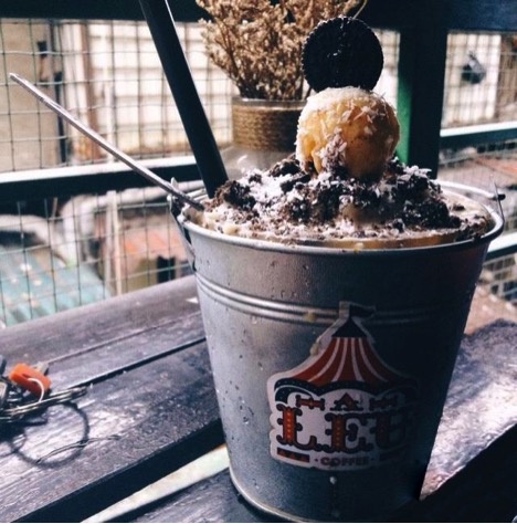 | Kem xô là món ăn mới đã nhanh chóng chinh phục giới trẻ Hà thành. Đúng với cái tên, lớp kem tuyết đặt trong xô nhìn rất hoành tráng. |